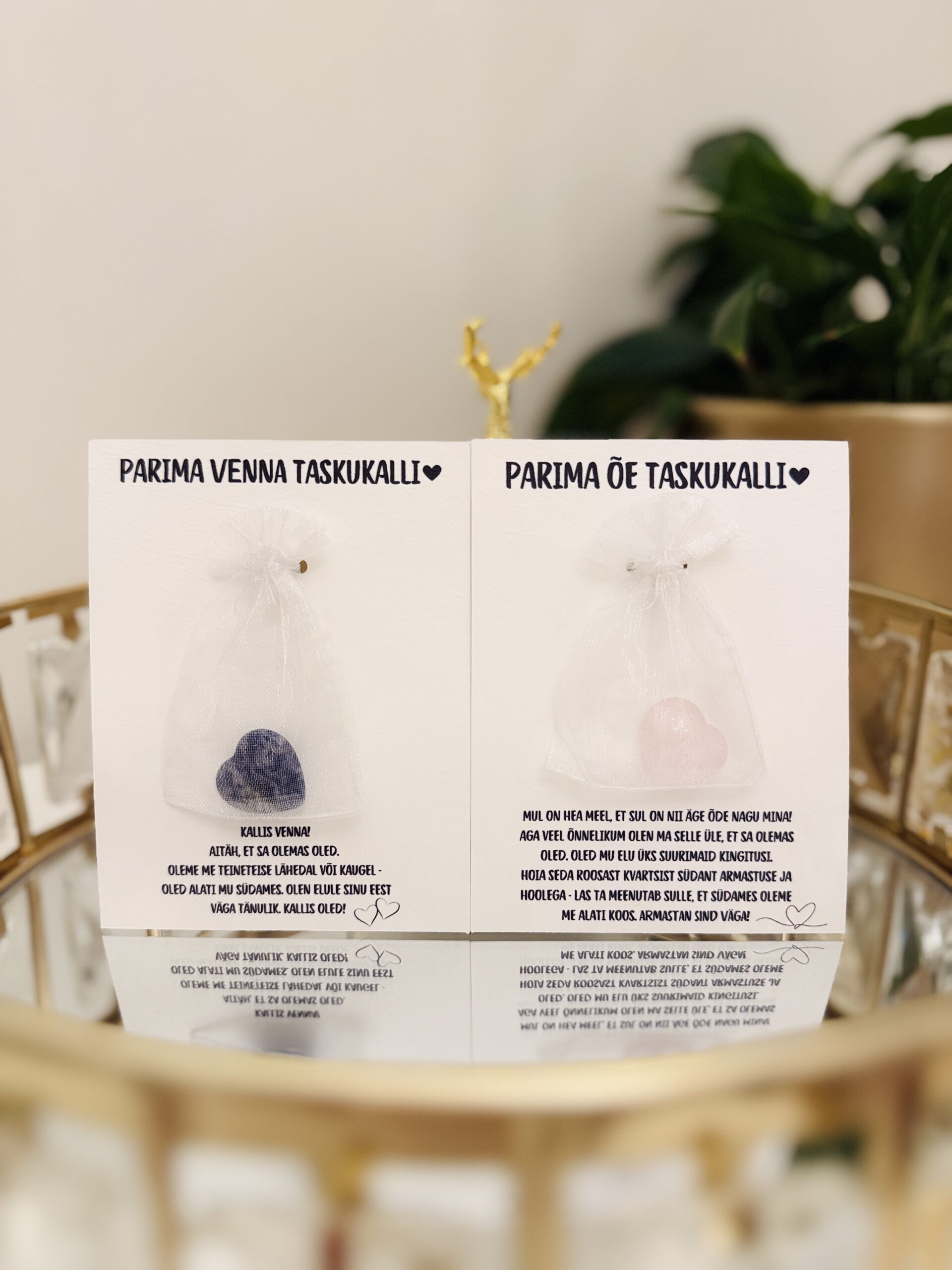 Taskukallid on erinevate sõnumitega armsad väikesed meened, mis tuletavad selle saajale meelde, kui tähtis ja oluline ta on. Taskukalli saabub nii, nagu pildil väikeses kotikeses, millega saab kingi saaja ta endale sobivasse kohta peitu pista, et see teda salaja kallistaks.