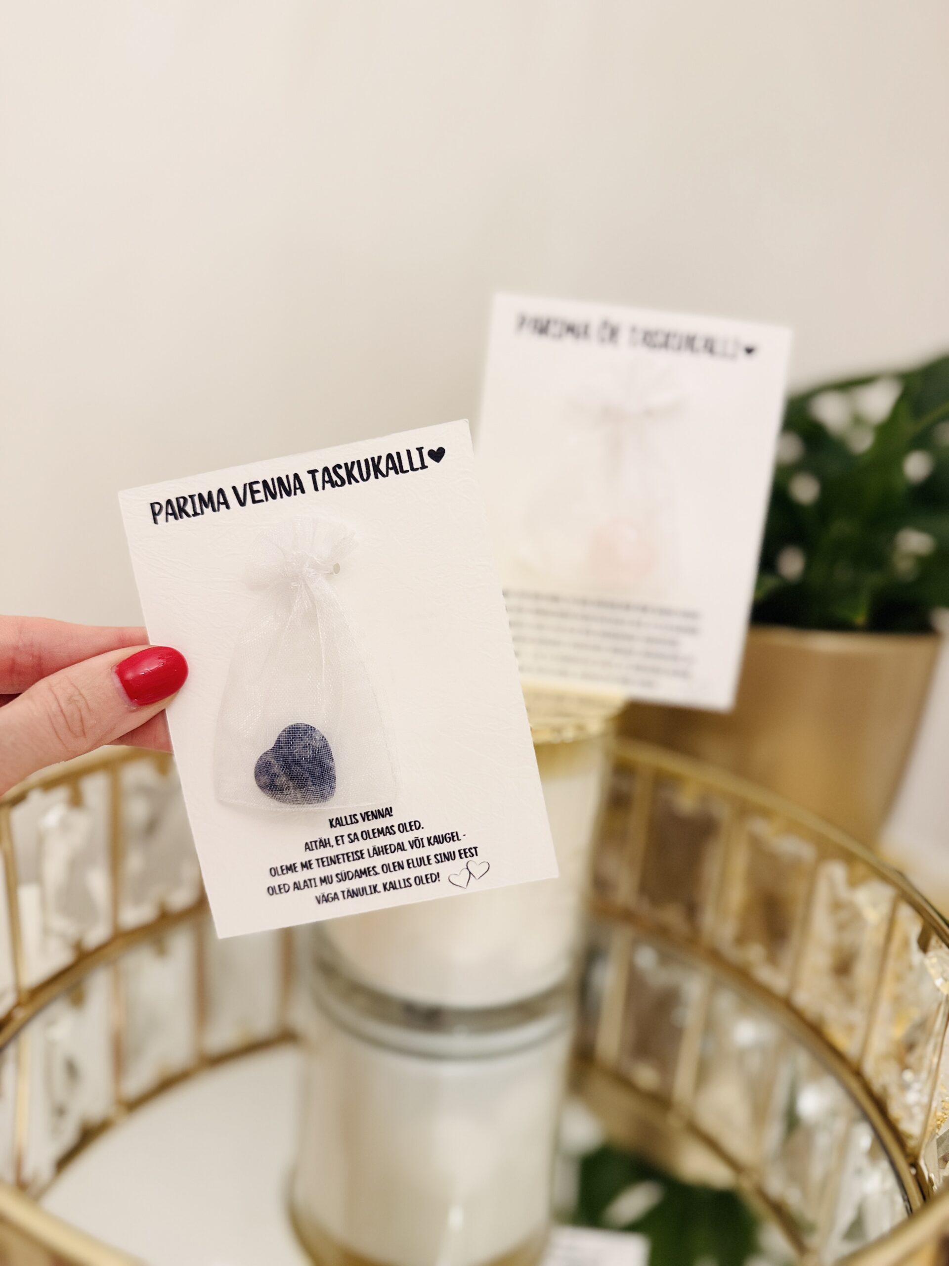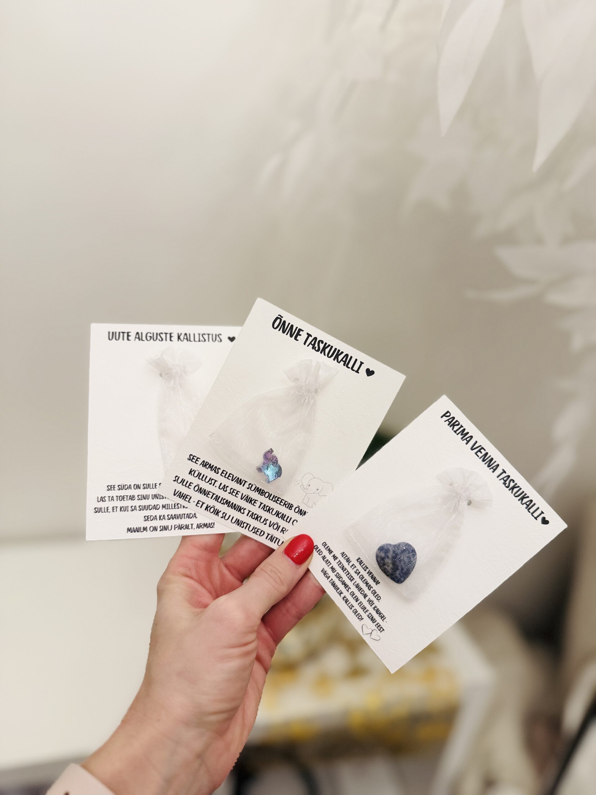 Taskukallid on erinevate sõnumitega armsad väikesed meened, mis tuletavad selle saajale meelde, kui tähtis ja oluline ta on. Taskukalli saabub nii, nagu pildil väikeses kotikeses, millega saab kingi saaja ta endale sobivasse kohta peitu pista, et see teda salaja kallistaks.